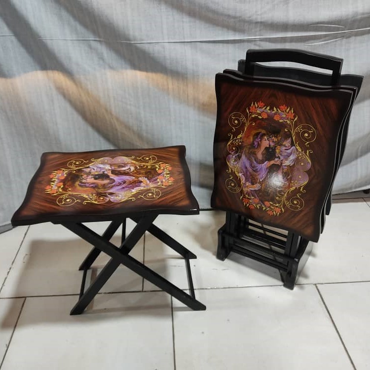 میز عسلی تاشو چمدانی طرح چهره چهار عددی