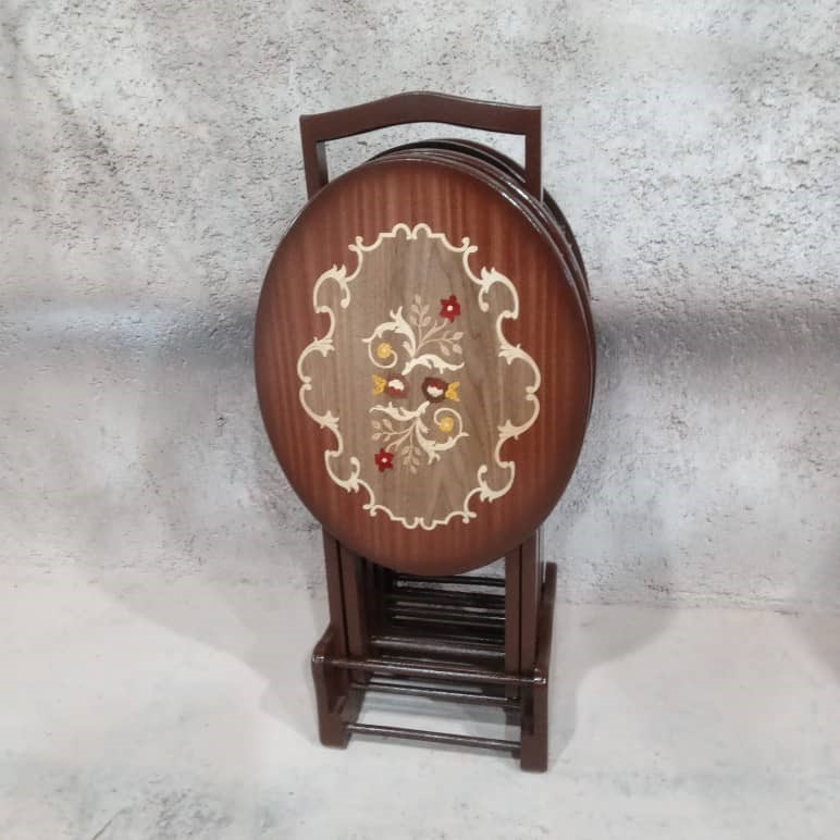 محصول میز عسلی تاشو چمدانی جلومبلی معرق بیضی چوب گردو را برای دوستانتان از روشهای زیر ارسال کنید